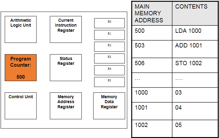 This holds the address for the next instruction that is to be Fetched-Decoded-Executed. This will increment automatically as the current instruction is being decoded to point to the next address. Also known as the address pointer.