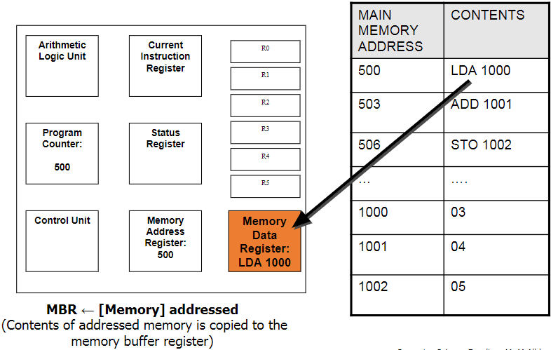 This is where the current instruction is being stored while it is being decoded and executed. While this is happening, the next instruction is being fetched into the MDR.
